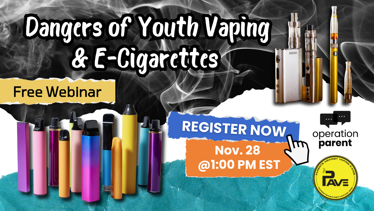 Vaping Webinar Educate you and your loved ones on the dangers of vaping!Register using the link below: https://register.gotowebinar.com/register/2782765408505261655?source=Emaill&mc_cid=6de6dcac94&mc_eid=084e1d8b74